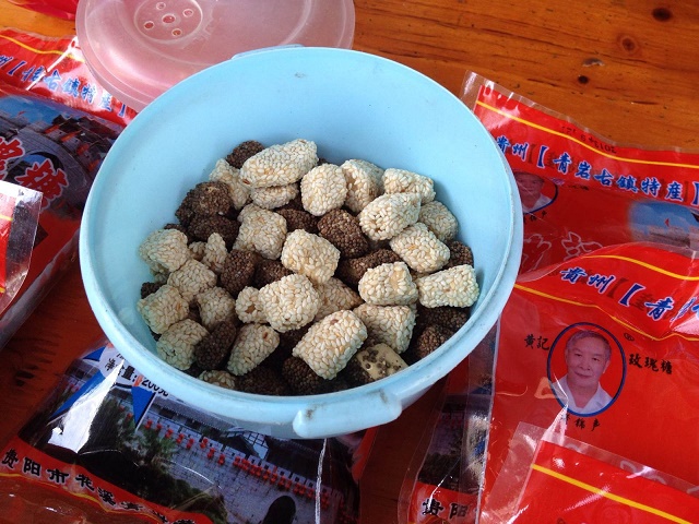 铜仁青岩麻片糖,原名“玫瑰糖”,问世已有一百多年的历史,据说最早的玫瑰糖是在1874年,青岩人用玫瑰花、红砂糖、糯米、小麦、芝麻、核桃仁、红砂糖制成条状或块状,闻着芳香,吃着酥脆。