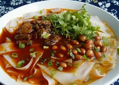 健康提示:铜仁辣鸡米皮风味特点: 油色通红,鸡肉香辣可口,回味无穷。