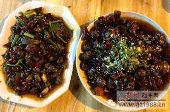 铜仁炒螺蛳是在铜仁的夜市上比较受欢迎的特色小吃之一,吃这种小吃一定要有耐性,吃的时候要用牙签慢慢的把螺蛳肉挑出来品味,也有人吃这美味吃出水平来,只见拿起螺蛳用嘴一嘬,一个螺蛳肉就进嘴了,再喝上一口啤酒,那滋味真是过瘾,想起来口水都要掉下来了,只要去夜市是一定要来上一盘两盘的就着小酒吃得美美的。偶然在市场上有人卖鲜活螺蛳就要买他两斤自己做,一次就吃个够,可比在夜市上吃实惠得多了,也不麻烦。
