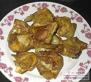 铜仁鸡肉香煎馄饨:鸡肉馄饨平底锅煎熟来吃,由于鸡肉鲜嫩很容易煎熟,油煎馄饨具有馅鲜软嫩,外壳酥脆的特点,也不失为一种特别爽口的美味小吃。
