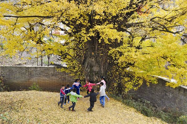 子疼了病了,也喜欢到银杏树下祈愿求安。很多时候,也顺便捡几片银杏叶去熬熬水喝,治疗感冒、咳嗽一类什么的,据说效果出奇的好。一说当年红军从这里路过时,杨成武将军见到这棵树,感动不已,诗情澎湃,挥笔为银杏树题过一首词,可惜的是由于种种原因,没有流传下来,成为最大的遗憾。或许是源于此,即便是在全国家家户户砸锅卖铁大炼钢铁期间,即便周围的很多树都被砍光了,一座座的山成为和尚头的时候,银杏树依旧丝毫不损,依旧受到村民们的顶礼膜拜。而银杏树,也没有让村里人失望,几乎年年抽枝展叶,岁岁开花结果。顽强地生长着,幸福地伫立着.银杏树已有五百年的历史,在威宁县城一提银杏树大家就会想到二堡村