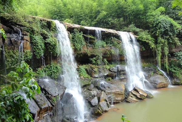 沿途林木茂密,到处飞帘溅珠,四级瀑布瀑宽均在四十米左右,落差高者近五十米,神韵俱佳,有如翠螺沐浴,或似新月流光,或若玉蟾戏蛇,或像云中落锦。