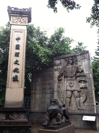 国酒门为中国古典城楼式建筑,两侧各立一根华表,一殿二亭四重檐,门楼上可供人们观光游览。整个建筑高大气派,庄重华丽,象征着国酒茅台源远流长的历史和享誉海内外高贵典雅的气质。