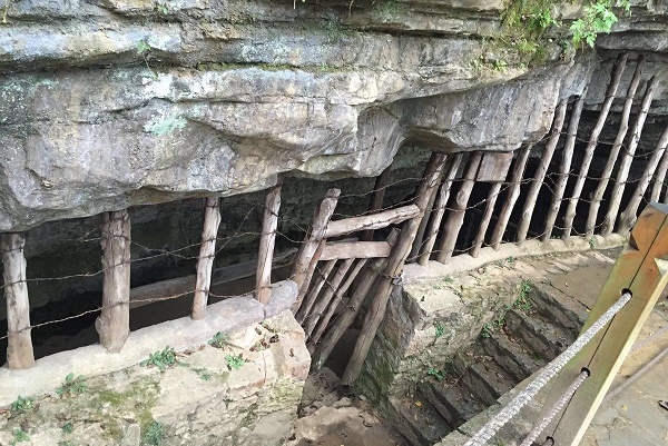 玄天洞囚禁处深藏于高山峡谷中,是一自然天成的洞穴,洞口呈上圆下平的的半圆形,地势同样险要而隐秘,这里偏僻难寻,成为国民党军统关押“重要”犯人的秘密所在地。杨虎城将军与夫人一家曾在此被关押了八年。