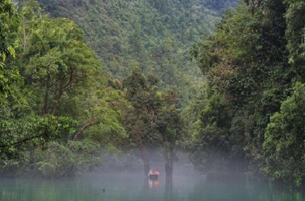 小七孔景区最精彩的部分是鸳鸯湖,也是整个游程的终点站。鸳鸯湖湖水碧绿凝重,因湖中有两棵并排参天的大树而得名。游湖需要乘坐湖上的手摇游船(船费30元/人),湖面上水道交错相连,但四通八达,大大小小的岛屿点缀其间,茂密的枝叶将视线遮挡,仿佛进入了水上迷宫。不过迷路了也无须担心,水上