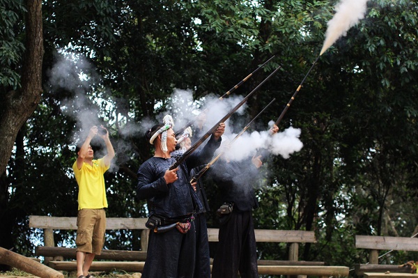 芦笙堂是寨子边山腰的一个平坦之处,有半个篮球场大。此处是岜沙的神圣之地,寨上的重大祭祀活动都在这里举行。