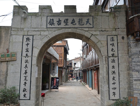屯堡村民流传着一句顺口溜:本寨的房子,云山屯的门子,天龙的“模子”。所谓“模子”,指天龙发展旅游的模式。2007年3月5日,天龙农民旅游协会会长郑锦贤接受记者采访时说:“协会农民前几天跑到他家,要求参股办旅游。”现今公司已经有意向把农民引进门。天龙屯堡古镇地处西进云南的咽喉之地,在元代这里就是有名的顺元古驿道,天龙屯堡古镇最早是顺元古驿道上的一个驿站,名叫饭笼驿。由于军事地理位置重要,从明代开始就在这里及周边大量屯兵,时至今日依然如帮,这里仍是驻军重地。 清朝康熙年间,云贵总督范承勋奉旨实行“改土归流”后,屯堡人由军户转变为普通百姓。天龙屯堡古镇更名为“饭笼铺”,由于地理位置的重要性,这里依然是清廷的驿站和屯兵重地。