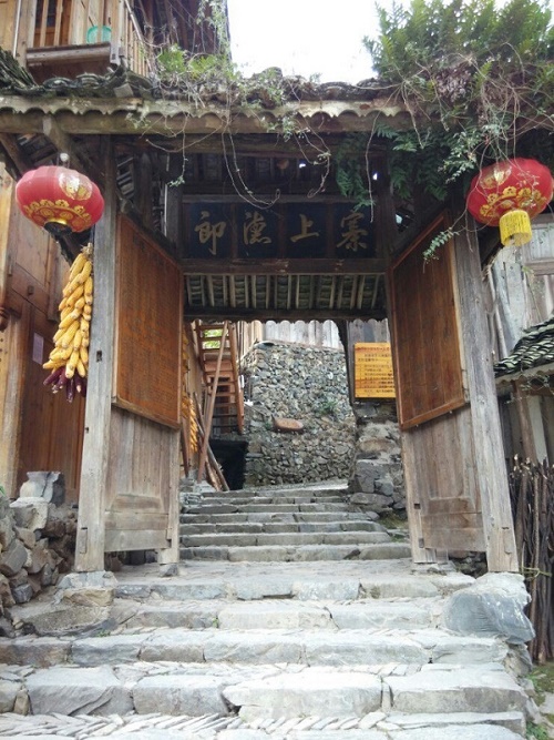 到达西江千户苗寨,停车场下来看到挂有“西江千户苗寨”牌匾的大门,从这扇大门到寨子还有1.5公里的路,可以坐电瓶车,也可以走路。过了这1.5公里,又看见一座和停车场那长得差不多的挂有“西江千户苗寨”牌匾的大门,这才算真正抵达寨子了。