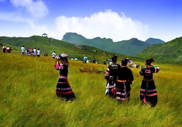 普屯坝—“云中大草原”,贵州高原的“内蒙古”。这里依山而居的苗家儿女能歌善舞,这里民族民间文化源远流长。策马驰骋普屯坝草原,蓝天白云,牛羊成群,峻岭逶迤,一派草原英雄气概。露营普屯坝观日出—一轮朝阳由群山组成的万顷波涛中喷薄而出,蔚为壮观。