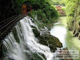 景区以来仙阁和鱼洞峡两景点为骨架。鱼洞峡上游是地下河溶洞以及人工湖,湖两岸是高200-235米的峡谷,悬崖绝壁,河谷狭窄,“天水一线”;