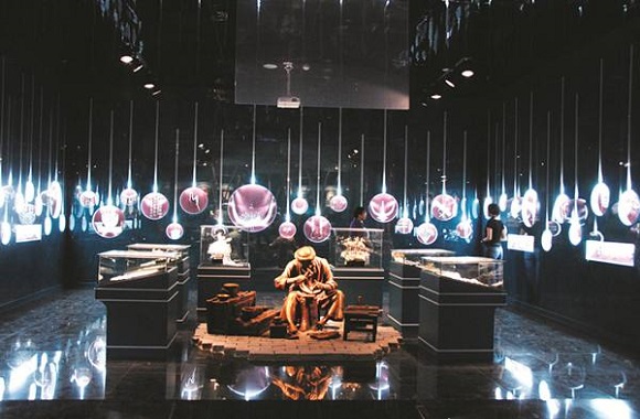 青少年互动展示馆通过梳理贵州省博物馆展陈体系中涵盖的自然、历史、文化、艺术等方面信息并进行再提炼和加工,以古生物、人类的发展和演进、少数民族的神话传说以及非物质文化遗产为重点素材进行演示和体验。
