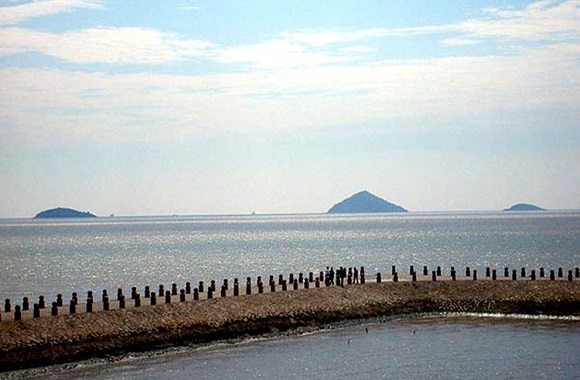 金山古海塘位于上海市西南杭州湾北岸,东接奉贤海塘,东北西南走向,略呈弧形,总长约25公里(现存约13.4公里)。