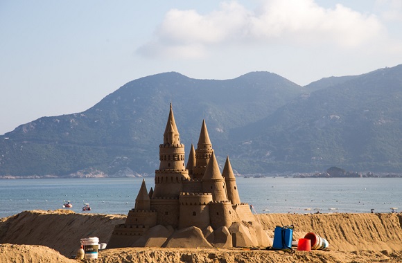 朱家尖 朱家尖,国家级重点风景名胜区 ,是舟山群岛核心旅游区“普陀金三角”的重要组成部分。绵亘岛际总长6300米的九个连环沙滩,好似一条黄金项链,镶嵌在青山碧海之间。自1999年以来,每年在此举办中国舟山国际沙雕节。