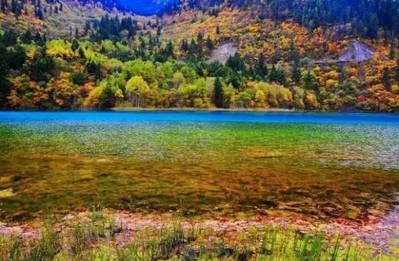 五花海位于九寨沟三个沟之一的日则沟,五花海海海拔2472米、深5米。五花海有“九寨沟一绝”和“九寨精华”之美誉,因为在同一水域,却呈现出鹅黄、深蓝、藏青、墨绿等色,斑驳迷离,色彩缤纷,这大自然妙笔涂抹的色彩,是那么大胆、强烈而又富于变幻。