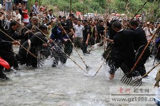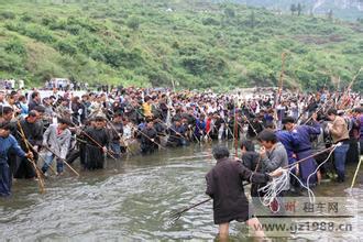 直到现在,九里的平坡,贵定的光明,福泉新安寨的苗家人民,每年三月初九这天,都要到河边去杀鱼。